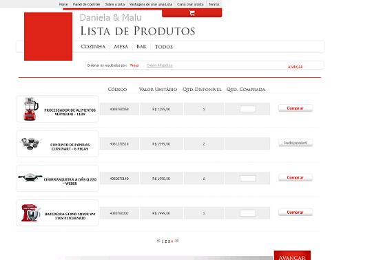 Em seguida, vem uma churrasqueira elétrica de R$ 1.990 e dois conjuntos de panela a R$ 1.549 cada um. Grande parte das opções é ligada ao mundo carnal: há um carrinho para churrasco, um “cooler” para gelar até 75 latinhas e uma capa de churrasqueira.