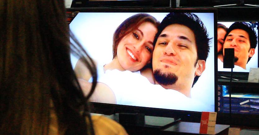 Kamilla se vê nas telas da Fnac, enquanto é pedida em casamento